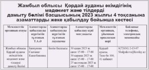 Жамбыл обласы Қордай ауданы әкімдігінің мәдениет және тілдерді дамыту бөлімі